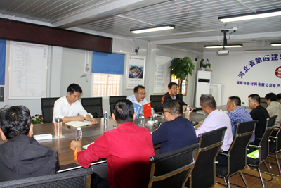 在会议室,董富强与项目部管理人员进行了工作交流,对各项工作给予肯定,强调项目部要提高站位,从严要求,以“四个树”为工作着力点,在安全、质量、进度、文明施工方面再发力,再提升,提高项目管理效果。一是安全树红线,要抓住公司第17次“百日安全生产无事故倒计时”活动契机,强化安全责任,树牢“红线意识”,从严落实安全制度,工作要做细,杜绝一切安全事故发生。高支模专项方案属于超危大项目,一定要按照规范要求组织施工。二是质量树品牌。要弘扬“工匠精神”,做到标准化施工,确保混凝土密实度,结构几何尺寸符合图纸设计要求,切实做好质量通病防范措施,做到精益求精,打造好四建品牌。三是进度树形象,要增强履约意识,倒排工期,制定详细的进度计划。要发挥四建铁军精神,抓住目前黄金时间全力施工,打硬仗、打胜仗,确保“115”目标实现,展现河北四建特级企业形象。四是文明施工树标杆,现场各项文明施工要落实到位,做好扬尘防治工作,达到观摩工地标准。