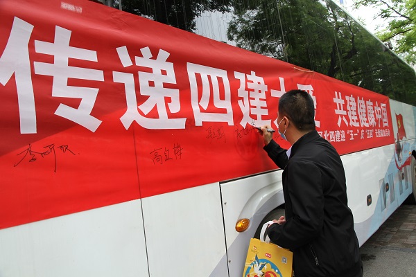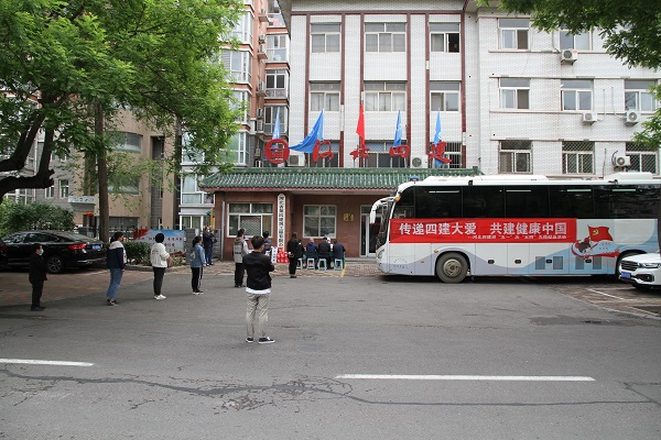 4月28日下午2点,在公司门口,一辆悬挂有“传递四建大爱、共建健康中国”红色条幅的白色献血车,和门口正上方的“河北四建”四个红色大字相互映衬,显得格外醒目;一条由四建职工组成的队伍“长龙”,正在徐徐向前移动着。此时,由公司党委宣传部和团委联合组织的以“传递四建大爱、共建健康中国”为主题的迎“五一”庆“五四”无偿献血活动,正在有条不紊进行中。公司机关以及附近片区的各单位职工共计48人参与。